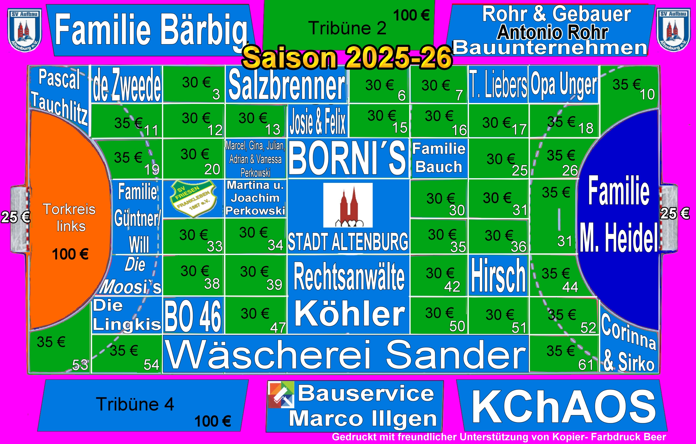 Das Imaginäres Spielfeld für die Saison 2025-2026 zur Unterstützung des Handballnachwuchses kann wieder von allen bestückt werden. Viele Felder haben sich unsere Unterstützer schon zum Wenzel gesichert.
